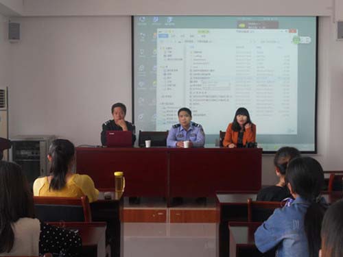 为加强网络安全教育,提高员工防骗意识,5月8日下午,公司于8号教学楼418会议室进行防范网络诈骗安全教育讲座。学区派出所刘所长应邀为该院员工教授防骗技巧,公司辅导员蒋育忻主持会议。