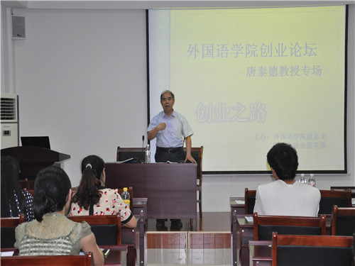 6月24日晚,公司创业论坛之《创业之路》于8号教学楼418会议室举行。美国华盛顿州官方教育代表、美国美亚教育集团(US Asia Education,Seattle,Washington State, USA)CEO、中国教育部《中国教师报》中美教育交流首席顾问唐泰德受邀担任主讲人。