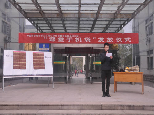 仪式伊始,王玉杰对此次活动的背景、形式、流程及意义作相关介绍,他号召各班要从“最后一次响铃”出发,做好“课堂手机袋”与社会主义核心价值观的践行者。随后,活动示范班级率先启动“课堂手机入袋”活动,其他班级也将以此为榜样,陆续完成活动启动。最后,卢彦峰发表讲话,他指出,外院学子要笃学敏行,以身作则,做好“课堂手机袋”的先行者与传播者,营造全校良好的学习氛围。