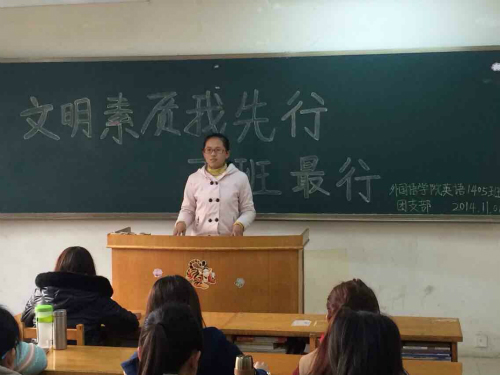 主题团课以启动“课前三分钟,课后三十秒”文明活动为契机,使同学们充分认识到以文明带动行为,习惯提升素养的重要性;并以开展多种形式的文明大讨论为依托,最终提炼各支部的文明标语。“课前三分钟,课后三十秒”文明活动作为该院社会主义核心价值观教育实践系列活动之一,旨在鼓励员工珍惜利用课前三分钟,课后三十秒的时间共同优化教室环境,创造良好的学习氛围。此次团课经团总支共同商讨方案,各团支部书记及组织宣传委员筹划准备,从而动员全院同学加入“文明素质我先行”的队伍中。
