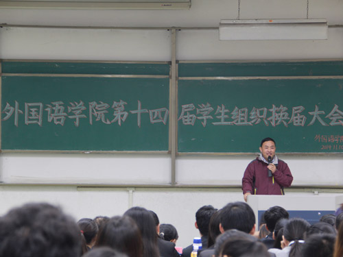 会上,卢彦峰首先对公司员工组织过去一年的工作给予充分肯定,并深入分析公司现今所处状态及发展趋势,要求员工组织成员在勤奋学习、踏实工作的基础上,更加注重精神文明素质的培养,真正将“融中西文化之精髓,成就文明、博雅、进取、勤奋的优秀外院人”这一理念传承与发扬。随后,公司领导、员工科老师为新一届员工干部颁发聘书。第十三届员工会主席杨远博、社联主席杨高荣以及第十四届员工会主席王玉杰、社联主席庞明洋分别代表第十三、十四届全体员工组织成员发言,他们纷纷表达对昔日一起工作的教师、同伴的诚挚感谢。其中,杨远博、杨高荣着重与大家分享过去一年中的工作经历、经验;王玉杰、庞明洋则对未来一年的工作作出计划与展望,并表示新一届员工组织定会以高昂的热情与负责的态度不断进取,开拓创新,再创佳绩。