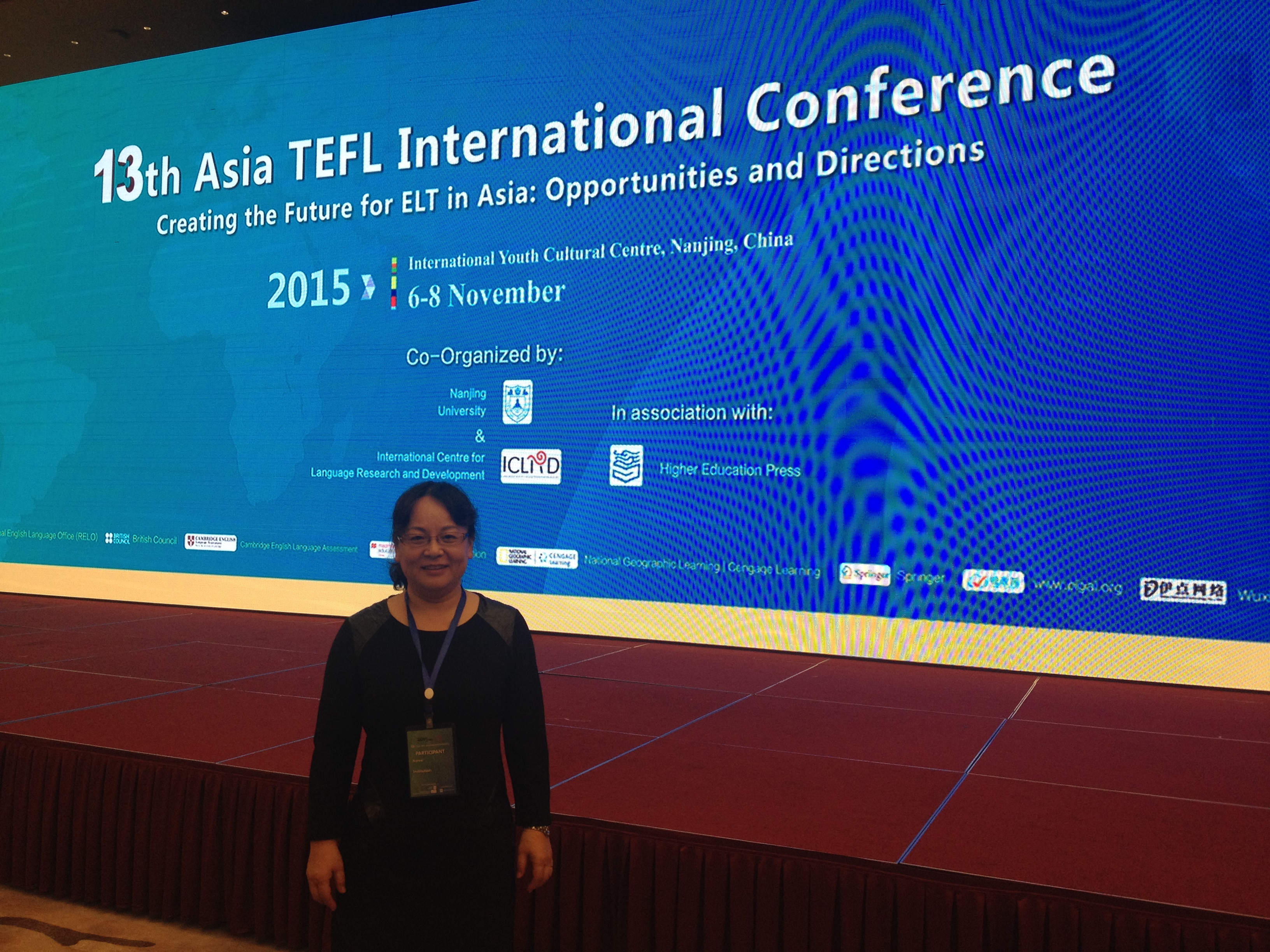 2015年11月6日至8日,公司教师岳红丽赴南京参加了“第十三届亚洲英语教师协会国际研讨会(13th Asia TEFL International Conference)”。本次大会主题为“开创亚洲英语教学的未来:机遇与方向”,就教育与语言规划、课程设计、语言习得、数字化素养、测试与评价、翻转课堂教学、微格教学与课程、教师教育与发展、亚洲英语能力框架与标准等主题进行了探讨。会议由南京大学和国际语言研究与发展中心共同承办,700余名来自世界各地的代表参加了大会。