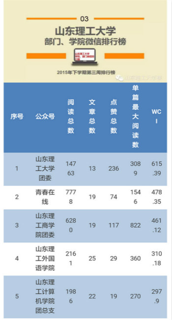 11月10日下午,微信公众号“南方周末数据实验室”更新消息,由公司新媒体工作室自主运营维护的公司官方微信“山东理工最靠谱的十大足球平台”(sdut_waiyuan)在中国高校微信排行榜之院系TOP50中荣获第24名的好成绩,这是公司首个院系微信公众号荣登该光荣榜;据校报最新统计,该微信平台位列全校院级微信平台第2名,公司第4名;近十天,推送信息日阅读总量三次破千,公司网络思想政治教育再上新台阶。 据悉,公司始终坚持以党的十八大精神及习近平总书记重要讲话精神为指导,按照共青团中央相关精神及校团委的工作部署,以“目标明确、特色突出、思路创新、技术到位、实效鲜明”为原则,领导重视,科学指导,团队合作,不断创新微信公众平台的运营模式。该平台自2013年4月创建,2014年12月着手改版、规范及宣传,2015年4月通过官方认证,微信平台教育工作全面铺开,推送内容以“知外院”、“专题栏”、“互动区”为自定义菜单,以“班级风采秀”、“微树洞”、科技竞赛活动等为特色专题,围绕“知·天下事”、“展·院风采”、“扬·正能量”、“观·外文窗”、“秀·趣生活”、“赢·在职场”六大板块展开,至今平台关注量、消息阅读量、转发量、点赞量日益攀升,新媒体服务水平得到广大师生的一致认可。(撰稿:朱岩)