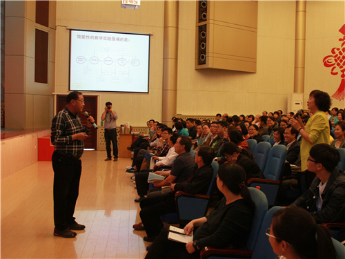 活动伊始,公司经理李静对李新民进行简要介绍。随后,讲座正式展开,李新民以自身求学及工作经历为切入点,强调教学过程中创新及信念的重要性,字字珠玑,情感真挚。进而,李新民详细讲解教师专业发展及相关研究、三个基本模式,并结合多样的教学策略,为在座教师介绍大数据背景下对教师提出的新要求;他鼓励创建教学团队,学会充分利用“Local Date”,并通过教学研究解决相关问题。