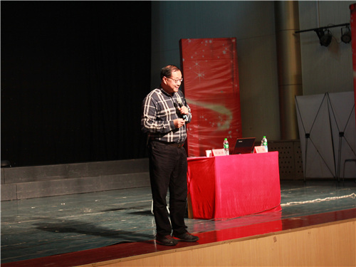 他讲到,外语教师认知能力与教师知识对于外语教学至关重要,而教师认知则是教师专业发展的核心,随之,他巧妙结合教师行为、信念及认知,全面诠释教学所知、所想、所信并论述其存在的结构关系,话题转换灵活,与观众积极进行互动,将现场氛围推向高潮。最后,他提出情景感知的泛在学习及“翻转课堂”——慕课、微课情景下的可能性教学模型概念,同时辅以解释性例证;他以其专业角度全面讲解学术论文的主要内容并就撰写高质量论文提出相关建议,精彩演讲赢得阵阵掌声。