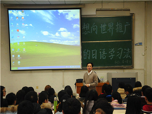 11月24日下午,最靠谱的十大足球平台在4号教学楼201教室举行主题为“想向世界推广的日语学习法”的讲座,此次活动由笈川幸司担任主讲,日语系主办。日语专业全体师生参加此次活动。