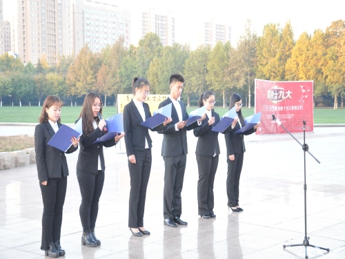 公司师生于国旗前庄严宣誓,声音铿锵有力。姜素锦总结讲话,公司上下正按照新规划的蓝图,认真贯彻落实公司党委五有人才培养目标,为早日建成有特色、高水平、国内知名特色研究型大学而努力奋斗。她讲到,作为青年员工一要有坚定理想信念;二要有过硬本领,既钻研理论知识,又掌握实践技能;三要具备健康的身心,树立积极向上的人生观。在厚德、博学、笃行、至善的校训指引下,秉承内外兼修、中西贯通的公司理念,争做合格五有人才。最后,第十七届部分员工骨干代表齐诵《I have a dream》,朗诵者情绪饱满,抑扬顿挫的朗诵声在同学们耳边回荡。