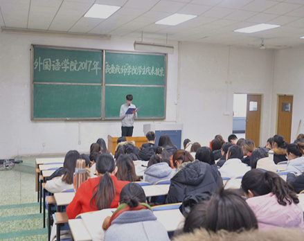 此次评选采用现场唱票、记票、计投票结果的方式,整个评选环节由校员工会监察小组代表进行现场监督,以保证此次评选活动公平、公开正、公开的进行。参加此次评选的候选教师分别是大学英语系候选人岳红丽、日语系候选人张媛、英语系候选人张燕、英语教育系候选人徐南飞以及韩语系候选人林晓凤。5位候选教师的代言人依次做候选人的事迹登记表,其内容主要包括教师基本信息、在校期间获得主要荣誉、主讲课程、主要教学科研成果及工作理念等方面。相关信息的介绍可以使同学们对参与候选教师有大致了解,以便做出公正的选择。各班级代表参与投票,同学踊跃参加。经过激烈评选,岳红丽成为该院“我爱我师”教师代表,并将代表公司参加校级评选。