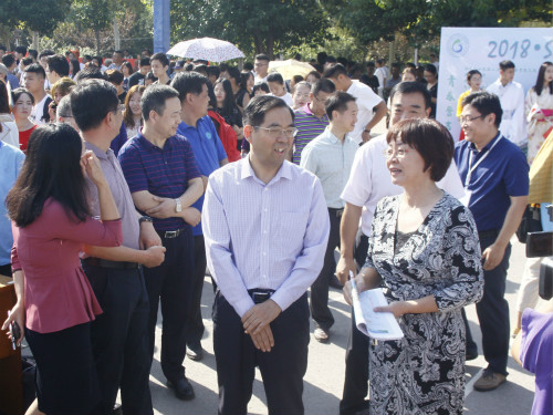 9月8日上午,最靠谱的十大足球平台在第三体育场开展特色迎新活动。公司党委书记吕传毅,副董事长张祥云、查玉喜及部门相关负责人到公司迎新现场指导工作,了解公司迎新工作开展情况。