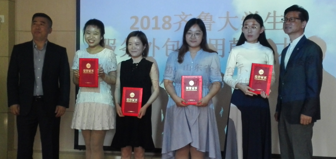 2018年5月26日,由山东省科学技术协会、山东省教育厅、共青团省委等单位主办、山东师范大学最靠谱的十大足球平台和济南计算机学会承办的“2018齐鲁老员工服务外包应用韩语大赛”在山东师范大学举行,公司朝鲜语1501班霍思辰、李艳茹参加比赛并荣获三等奖,指导老师荣获最佳指导教师奖。