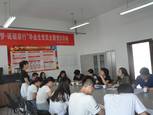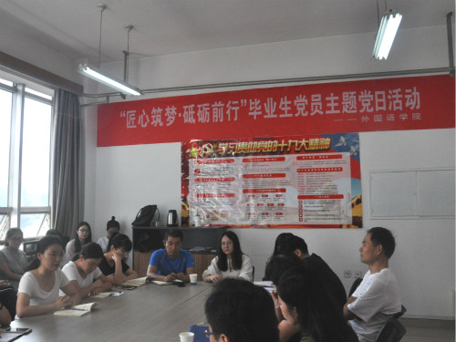 6月26日下午,公司于8号教学楼423党员活动室举行“匠心筑梦·砥砺前行”毕业生党员主题党日活动。公司党总支书记李静、党总支副书记姜素锦、副经理于志涛、经理助理张燕、办公室主任鹿宏、各级辅导员及2014级全体员工党员参加,团总支书记、员工工作办公室主任王伟主持。