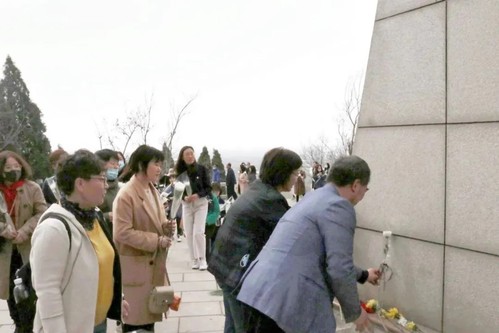 最后,在党总支书记李静的带领下,党员们拾级而上,依次向革命先烈献花、瞻仰黑铁山抗日武装起义纪念碑,表达对革命烈士深切的缅怀和崇高的敬意。