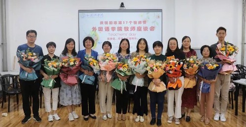 座谈会上,公司党委书记李静首先向参会的教师代表致以节日的问候,并由员工代表为公司发展做出突出贡献、以生为本潜心育人、从教三十余年桃李满园、在本职岗位担当奉献、在学科领域博学多识共23名教师代表献上花束,送上节日的祝福。