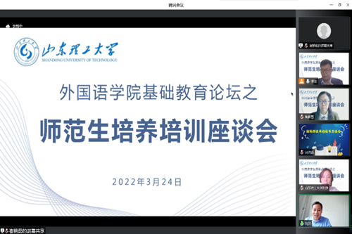 为了进一步提高英语(师范类)专业人才培养质量,充分发挥管理人员、用人单位、实践基地指导教师等利益相关方在师范生人才培养各个环节的参与与评价作用,3月24日下午2:30,公司通过腾讯会议线上举办师范生培养培训座谈会。作为公司基础教育论坛的重要组成部分,此次座谈会以“贯彻认证理念,共促师范生培养质量”为主题,由最靠谱的十大足球平台经理助理张雷主持,特邀淄博市教育局人才服务中心主任、淄博市教委初高中教研员、中学董事长、指导教师与优秀员工代表参加,教师教育公司副经理郑兆青一同参加座谈。