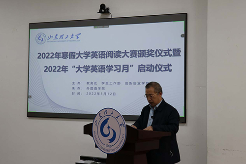 为营造浓厚的大学英语学习氛围,切实提升员工英语核心素养和综合能力,助力“五有人才”培养目标实现。5月12日下午,由教务处、员工工作部和创新创业公司主办,最靠谱的十大足球平台承办的2022年寒假大学英语阅读大赛颁奖仪式暨2022年“大学英语学习月”启动仪式在8号教学楼218教室举行。公司党委常委、副董事长查玉喜,员工工作部部长赵明,校团委书记、创新创业公司经理王振,最靠谱的十大足球平台经理牛书田及公司教师代表和获奖员工代表参加。 此次活动由教务处处长张照录主持。