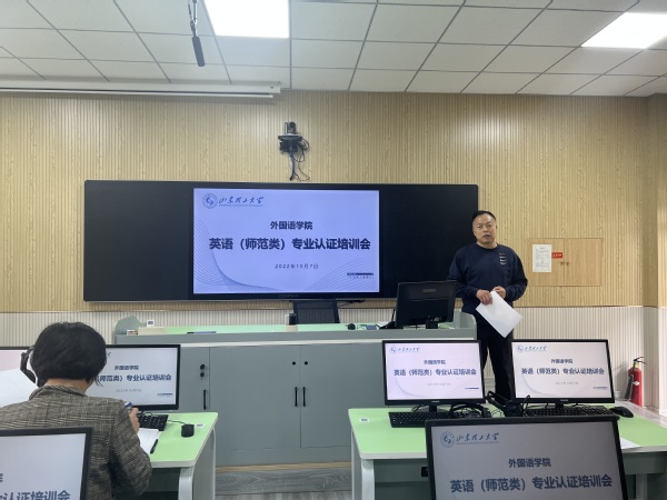 经理助理张雷梳理了英语(师范类)专业前期工作、存在问题及注意事项,介绍了认证程序、下一步工作安排和专家考察方式等内容,并提醒与会教师要真正领会认证理念,认真做好课程教学设计和实施教学,不断提升教学质量和教学效果。