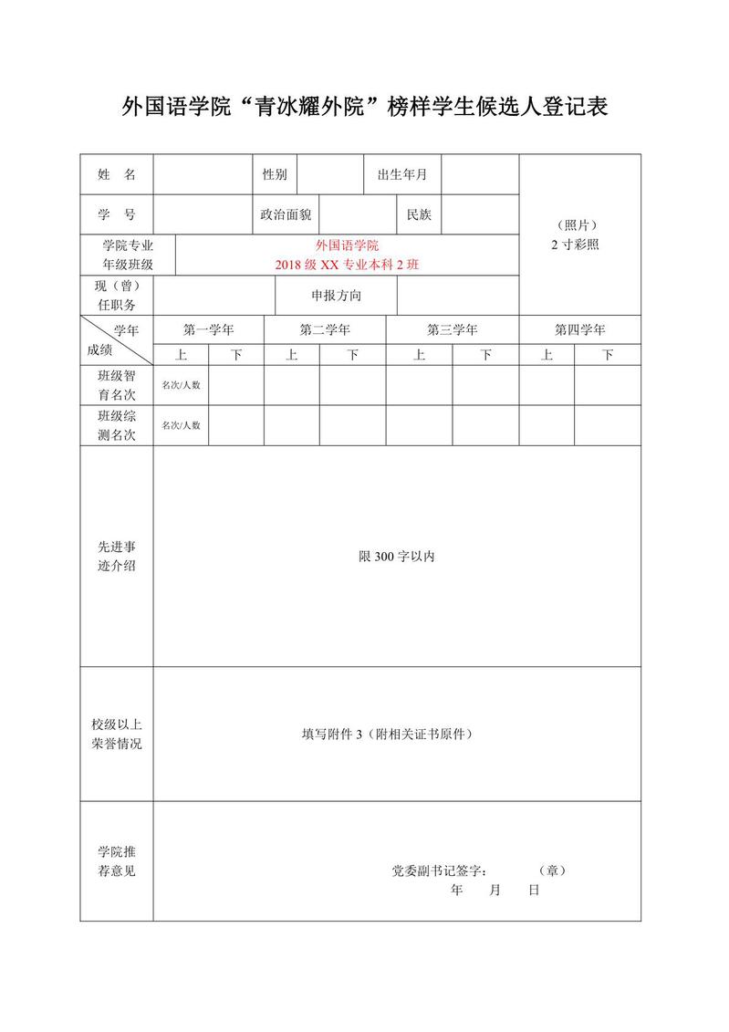 最靠谱的十大足球平台“青冰耀外院”榜样员工候选人登记表
