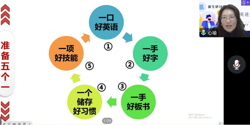 第二部分“五个一”包括一口好英语、一手好字、一手好板书、一个储存好习惯、一项好技能。赵敏通过展示优秀板书,着重讲解储存的重要性,教导员工们要在读书、看课两大板块拓展文化知识,厚积薄发。紧接着又展示优秀课例,强调信息化技能的重要性。