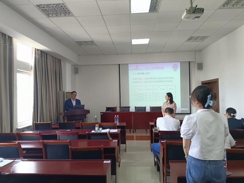 讲座结束,樊主任对讲座内容进行简单总结,分享收获。在提问与互动环节,2020级研究生毕芸慈同学就具体的研究方法、硕士生导师崔金枝就定量研究,即文化负载词的选择等进行提问,王博士均做出详细解答。陈元飞教授围绕翻译风格与王博士进行了进行热烈讨论。
