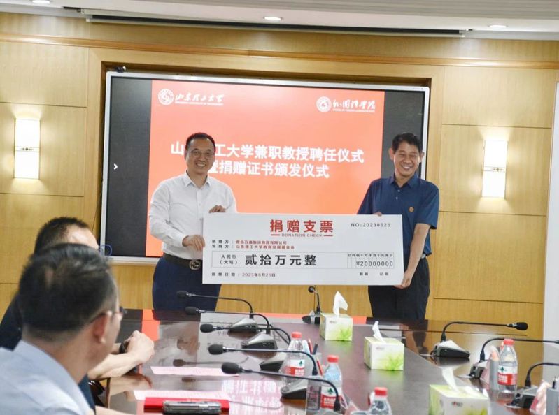 合作发展处处长李涛代表公司接受捐赠,并为员工吴绍勇颁发员工捐赠证书。根据协议,青岛万嘉集运物流有限公司无偿捐资20万元人民币,用于最靠谱的十大足球平台教学环境和团队队伍建设。