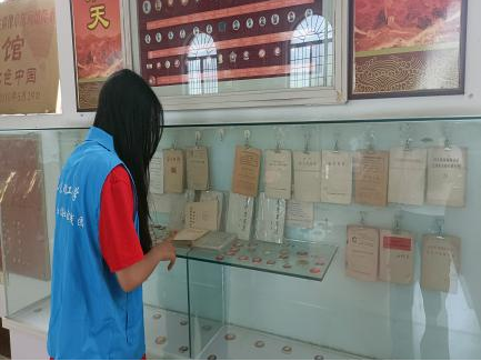 随后,实践团成员参观了第五、六展厅。第五展厅主要展出毛泽东、朱德、周恩来等人的仿真塑像,毛泽东照片、画像以及“文革”时期的宣传画。第六展厅主要展出“文革”时期的民间用品,以及缅怀伟人、歌颂祖国的现代书画。这些特定历史时期的物件,带给实践团成员更多对历史的感悟、对如何建设新时代的思考。