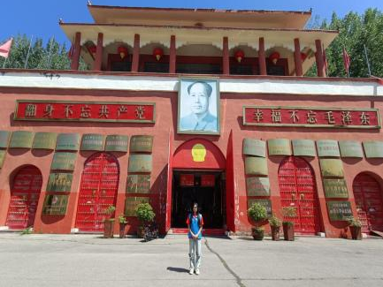 图为实践团成员邹城毛泽东像章艺术博物馆地标打卡。