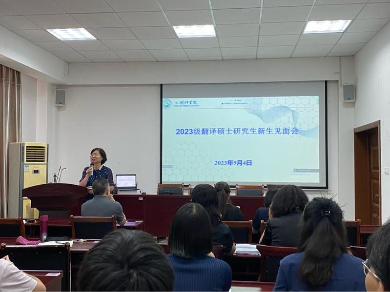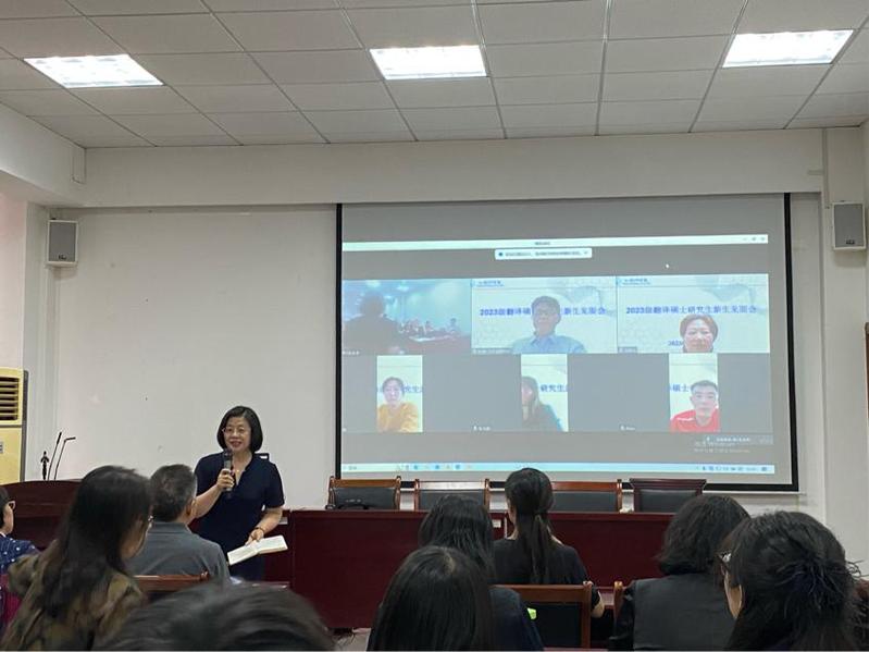 9月4日下午16:00,2023级翻译硕士研究生新生见面会在最靠谱的十大足球平台8号教学楼418教室举行。最靠谱的十大足球平台党委书记李静、经理牛书田、党委副书记宋伟、副经理张燕、副经理张雷、校学术委员王晓华教授、翻硕办公室主任樊丽霞、2023级硕士生导师和2023级翻译硕士参加此次见面会。会议采取线上线下相结合的方式进行,副经理张燕老师主持本次见面会。