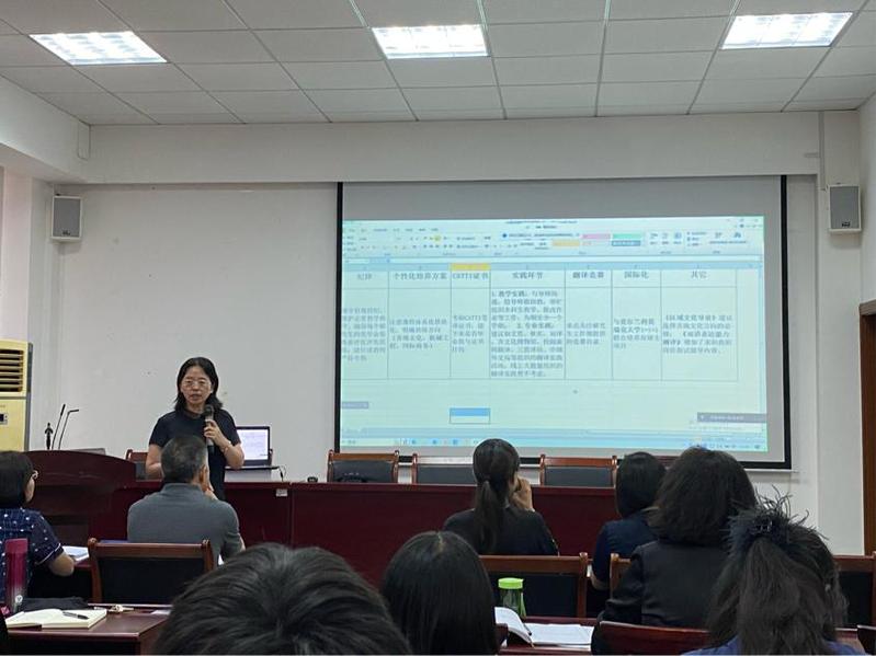 翻译硕士管理中心主任樊丽霞围绕具体培养方案进行介绍,详细讲解了员工纪律、个性化培养方案,以及参加CATTI证书和翻译竞赛的重要性。同时,在实践环节中需要注重教学实践和专业实践,鼓励同学们认真考虑专业方向,及时与导师沟通,做好课程的选择。