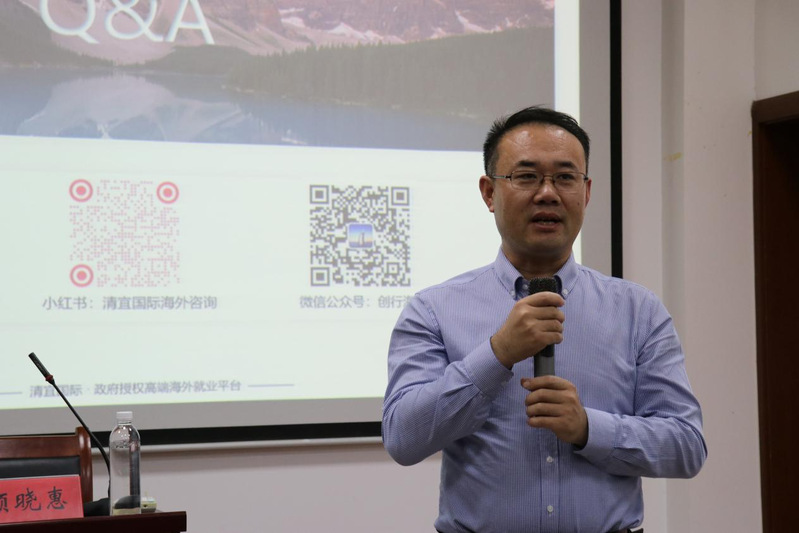 宋伟进行总结发言,他对颜晓惠的到来和带来的精彩宣讲表示感谢。他指出,此次宣讲会为员工提供了海外高端就业、成就国际梦想的平台,有利于拓展员工实习就业渠道,为员工未来发展提供更多选择。他鼓励员工以此次宣讲会为契机争取多走出去看一看,为自己的学业生涯、职业生涯增添更加亮丽的色彩。
