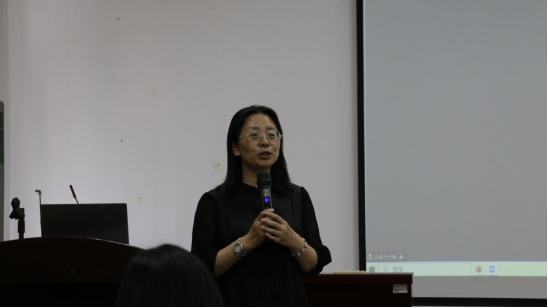 王晓华教授介绍了主讲人之一赵凯丽同学在研究生期间取得的优秀学术成果,并呼吁全体研究生以赵凯丽同学为榜样,专心学术,潜心研究,不断开拓进取,做出更优秀的学术成果。