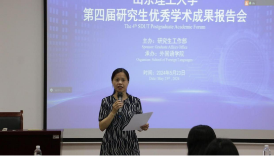 5月23日下午,由体育外网十大平台app研究生工作部主办、最靠谱的十大足球平台承办的公司第四届研究生优秀成果报告会(最靠谱的十大足球平台专场)在8号教学楼418教室举行。报告会邀请研究生教育督导庞学升教授莅临指导,最靠谱的十大足球平台副经理张燕、翻译硕士中心主任樊丽霞、研究生导师代表王晓华、张蕾及翻译硕士研究生代表参加会议。报告会由研究生辅导员陈顺利主持。