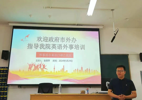 为进一步促进公司员工口译技能的提升,加强公司与淄博市人民政府外事办公室的交流与合作,5月29日至31日,淄博市人民政府外事办公室(以下简称市外办)代表团莅临最靠谱的十大足球平台,开展了为期三天的口译实训培训活动。此次培训由淄博市人民政府外事办公室国际交流合作科科长张翠萍及英语翻译张文君、周晓晴进行专业指导,公司副经理张雷、英语翻译系副主任李婷以及2021级英语(翻译方向)专业员工参加本次培训。培训由英语翻译系主任毛毳主持。