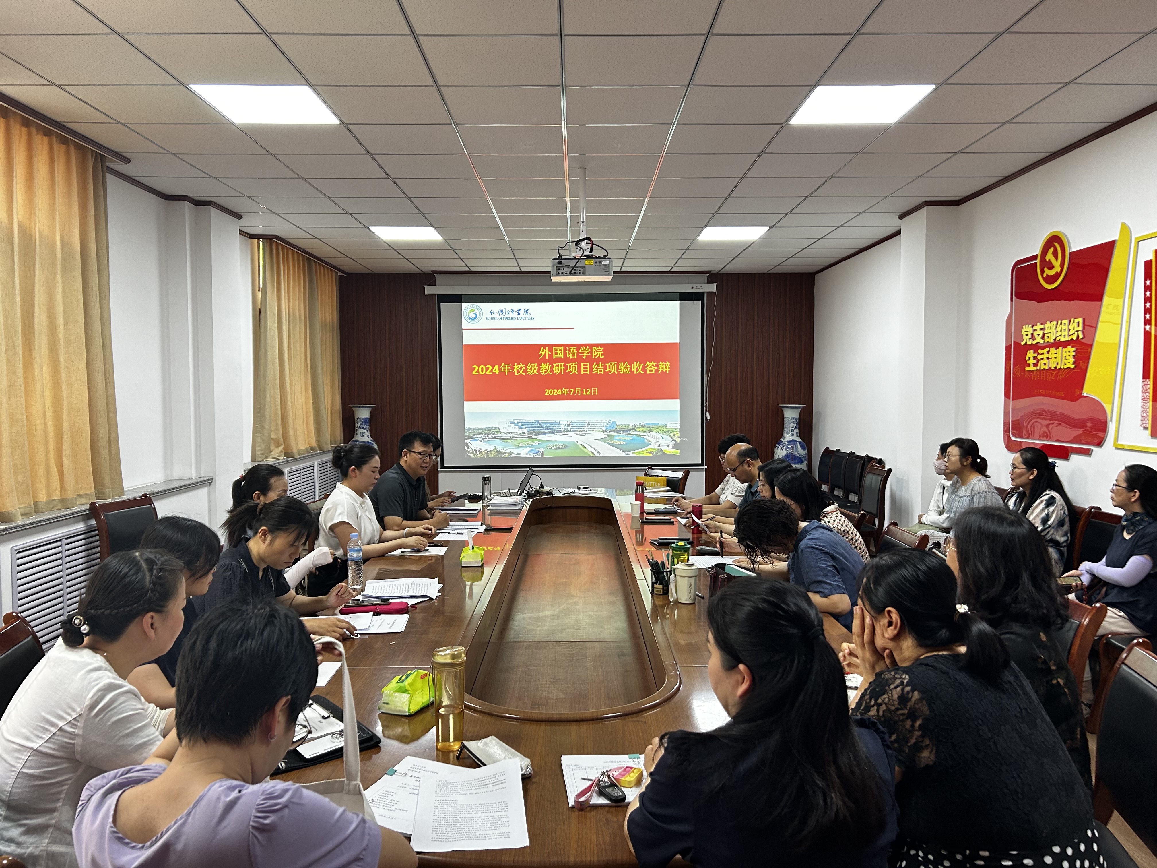 为深化我院本科教学研究与改革,持续提升公司的公司产品质量和外语教师的执教能力,根据《最靠谱的十大足球平台2024年校级本科教学研究项目结项工作方案》要求,公司于7月12日下午在8教111室对本次申请结项的15个教研项目进行验收答辩。校学术委员会委员、院教授委员会成员、教学督导等5人组成评委专家组,王晓华教授担任组长,公司教学副经理、项目负责人和部分老师参加了本次会议。