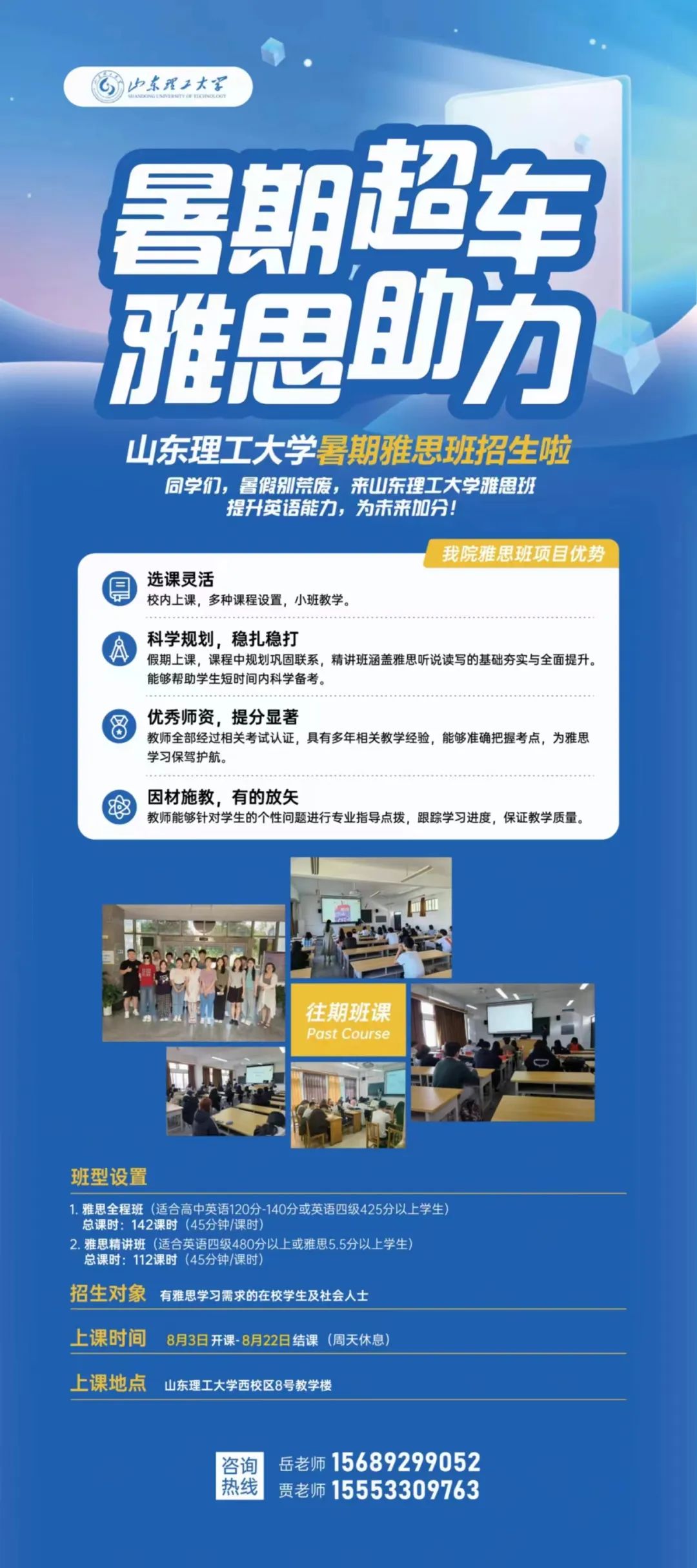 无论你是准备出国留学,还是为了提升自己的英语水平,山理工外院雅思班都是你的不二之选。在这里,你将与志同道合的同学们一起努力,共同追逐高分梦想!