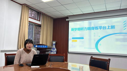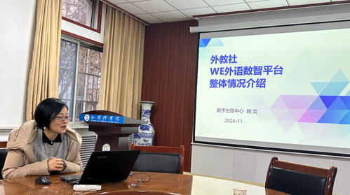 随后,顾奕主任以《听力随身练》教材开发为例介绍了外教社数字出版中心数字平台最新研发情况。徐青总监详细介绍了听力随身练的新功能、竞赛活动和wetest组卷功能等内容,讲解如何利用科学的听力训练体系提升员工的听力理解能力。最后在讨论环节,专家们认真听取了系部主任及任课教师反馈的教材使用方面的问题,并就如何优化教材内容和小程序功能进行了深入的探讨和交流。