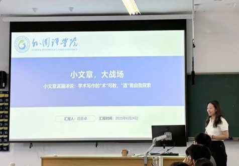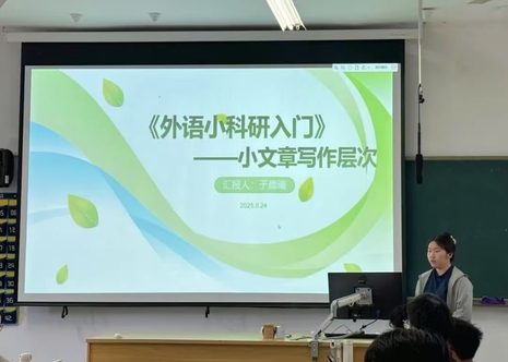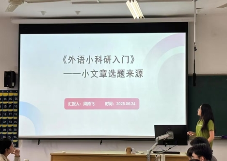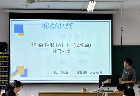 读书会活动采取“导师荐书、员工分享、师生点评”的模式展开。本次研讨的著作为《外语小科研入门》,由陈元飞教授推荐。读书会上,首先由刘成龙、周腾飞、于晨曦、田亚卓、郭文君等五位同学依次分享了他们的阅读心得。