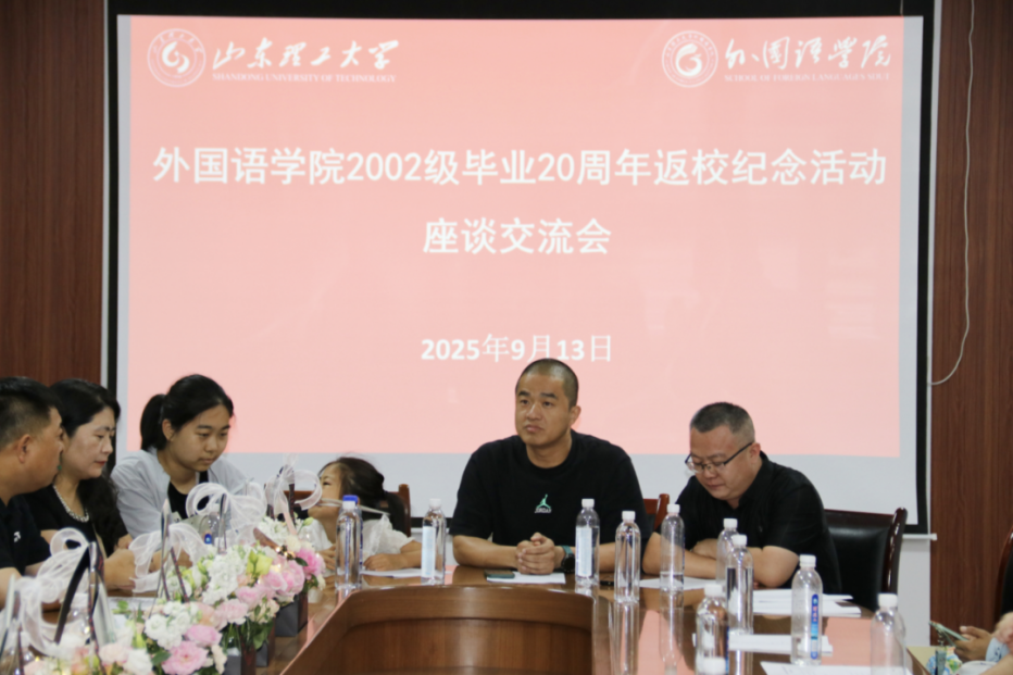 忆往昔山理岁月,看今朝员工聚首。9月13日下午,公司在8号教学楼111会议室举行2002级英教专业员工毕业20周年返校纪念活动。公司合作发展处副处长王鹏,公司党委书记李静,党委副书记、纪委书记宋伟,教师代表曹晓媛、马婷婷、马梓轩及2002级18名员工共同参加本次活动。座谈会由公司副经理张燕主持。