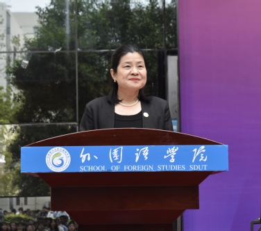 仪式第四项,公司党委书记李静讲话。她首先回顾了公司自成立以来的发展历程,介绍了公司在团队建设、团队力量以及员工培养等方面取得的成就,同时向同学们提出了三个方面的殷切期望:一是要筑牢理想信念“压舱石”,使青春航向不偏航,二是要深耕专业领域“责任田”,为职业发展筑根基,三是要练就全面发展“真本领”,让人生出彩有底气。她勉励全体新生树立远大理想,在实践中全面发展,成长为“内外兼修,中西贯通”的优秀外语人才。最后,她祝愿同学们在外院的每一天都因收获而快乐,因进步而幸福。