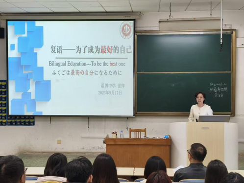 活动特邀淄博中学副董事长张萍老师作专题报告。张老师以“润人文·精专业·通智能:做一名未来幸福教师”为核心,从“厚德、博学、笃行、至善”的教师底色,到“内驱力、阅读力、学习力”等成长能力,再到政策导向与AI伦理下的教师发展方向,为师范生构建了兼具人文温度与时代视野的职业成长框架,让在场学子对“幸福教师”的内涵有了更深刻的理解。