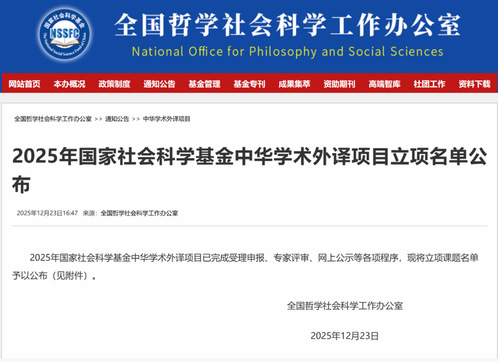 近日,全国哲学社会科学工作办公室公布2025年国家社科基金中华学术外译项目立项名单,全国共计255个项目获得立项。公司教授陈元飞博士主持申报的学术著作翻译项目《稷下学研究:中国古代的思想自由与百家争鸣》成功获批国家社科基金中华学术外译一般项目。