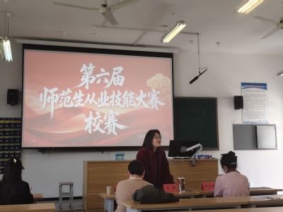 为深入推进公司师范生人才培养工作,全面提升师范生核心素养与教学实践能力,4月11日,公司在8号教学楼417教室举办第六届师范生从业技能大赛校级决赛。比赛邀请张店区教育研究中心教师赵敏、张店区第三中学教师田文婧以及公司教师李金凤担任评委,副经理张雷、技能大赛指导教师张艳及公司部分师范生观摩比赛。