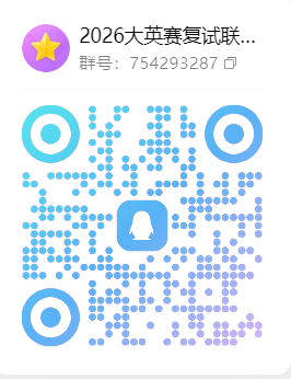 请参加复赛的同学扫描下方的二维码加入“2026大英赛复试联络群”(群号:754293287),参加复赛时请携带校园卡提前15分钟(17:45)集合,本次复赛包含笔试及口试。望准时参加,过期未到,视为自动放弃。